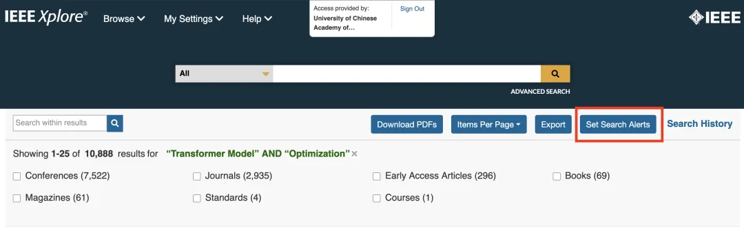 使用检索或高级检索(Author/Publication Title等)定位精准文献;