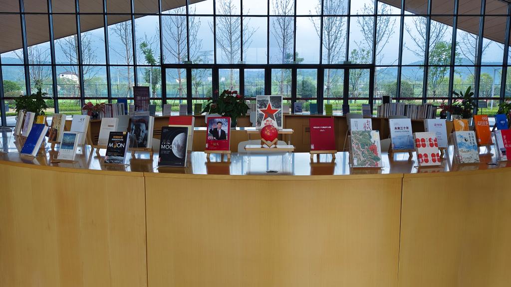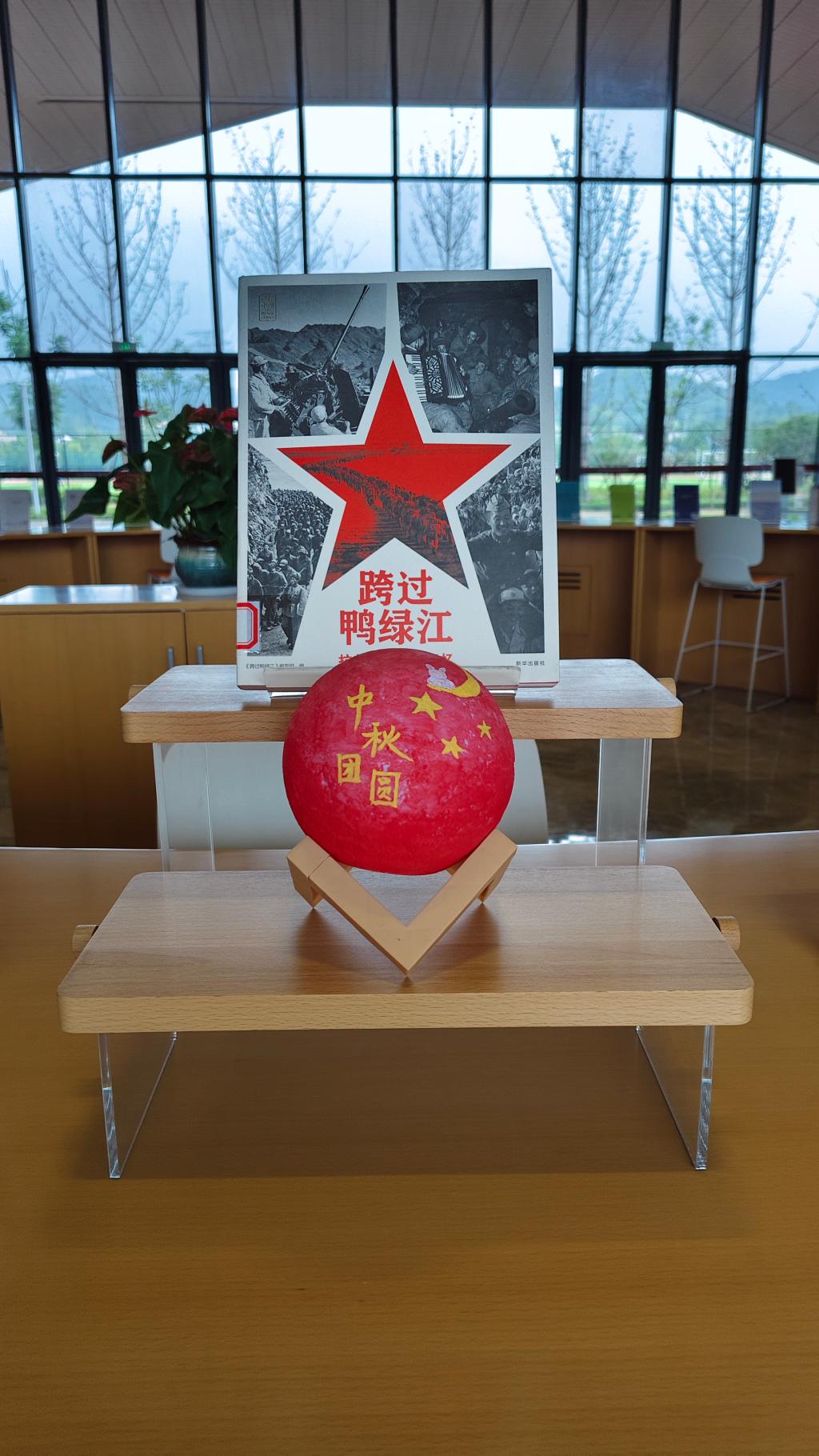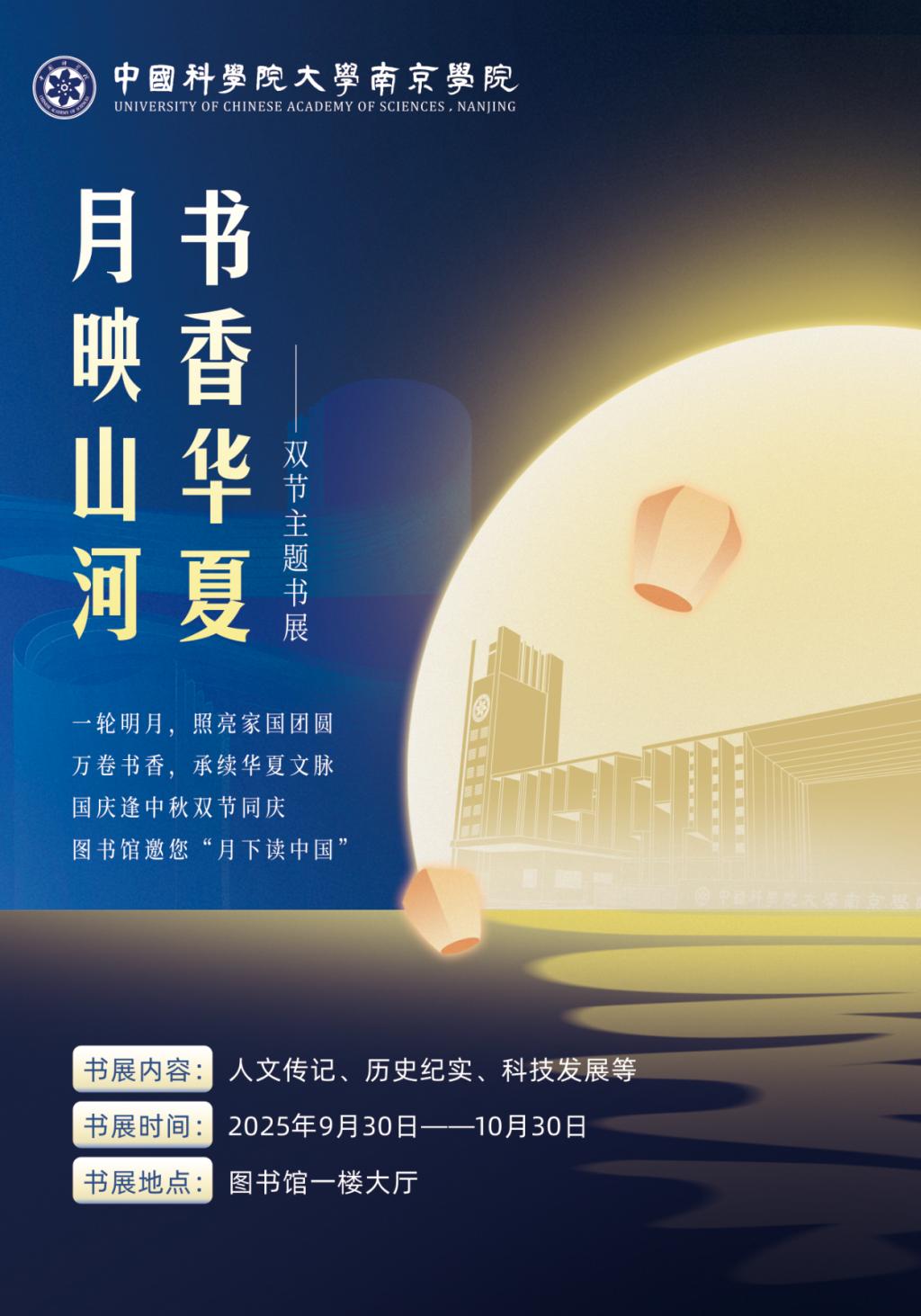 国庆逢中秋家国同庆,图书馆特设“月映山河书香华夏——双节主题书展”。