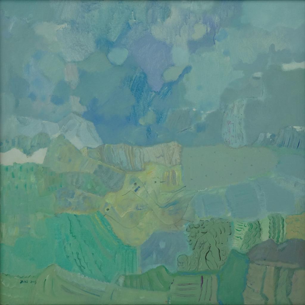 在这个山水印象系列作品中,朱伟之所以把东西方两个不同的艺术名词,用在自己现代艺术语言探索中做为常用词汇,这跟他作品在艺术上追求东西方艺术融合的理念是一致的。这个系列作品中,我们可以看到在西方艺术语言体系里,增加了诸多很明显的中国艺术原素,是一个典型东西方艺术融合的范例。